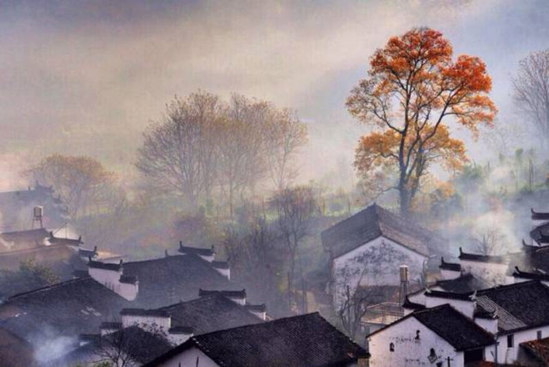 秋天,丰收了,一片片青瓦晒着红色的辣椒,烟囱上升起袅袅炊烟,氤氲着人间的烟火气,温暖而妥贴,是“暧暧远人村,依依墟里烟”。冬天,屋子里燃烧着猩红的炭火,雪花片片落在青瓦上,月光清冷如水,是“雪花数片又成晴,透瓦清霜伴月明”。