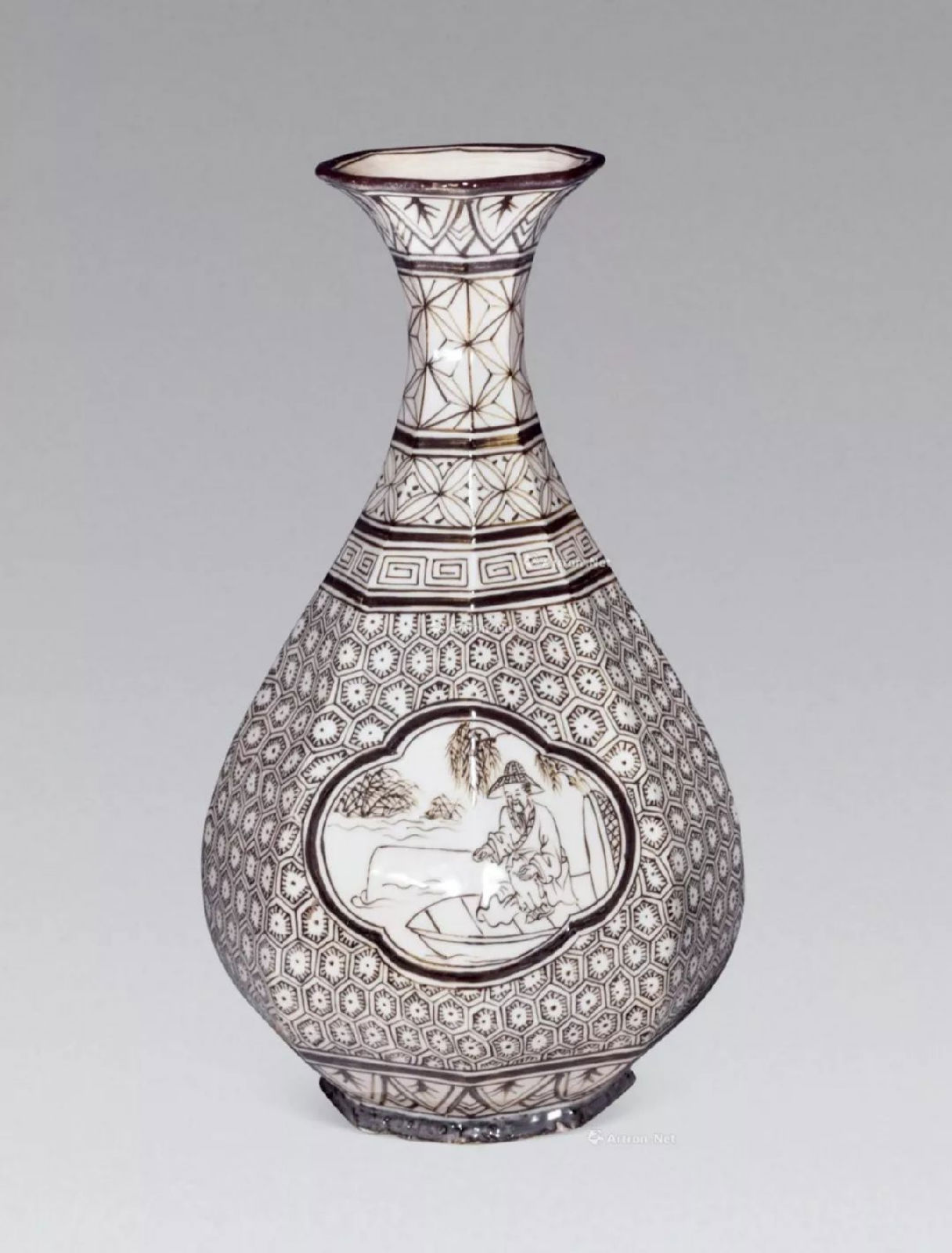 宋 吉州窑开窗太公钓鱼图八棱玉壶春瓶