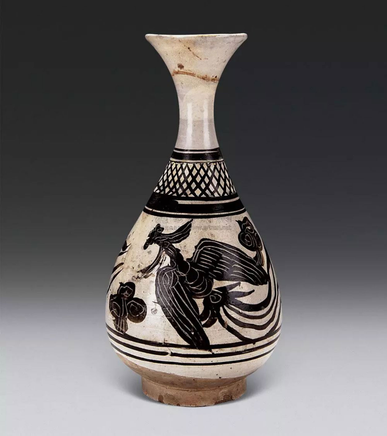 金 磁州窑白地黑花凤纹玉壶春瓶