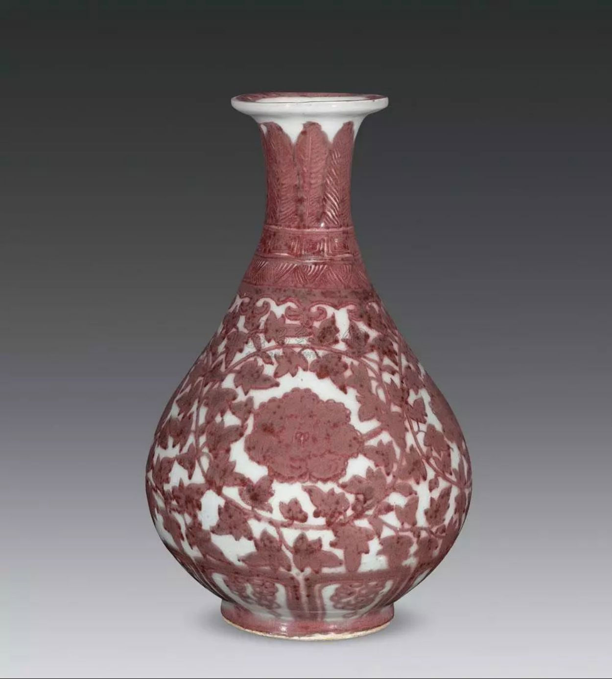 故而明洪武釉里红缠枝牡丹纹玉壶春瓶