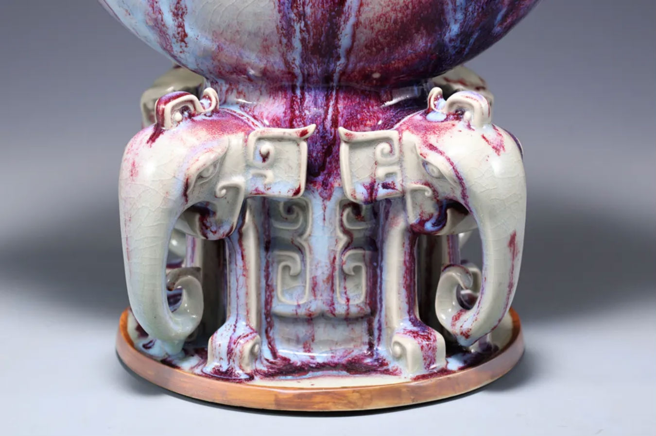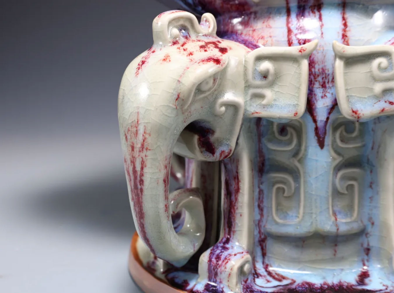 古代有太平有象的说法,象与祥谐音,底座以象为主调,象征"吉祥如意"和"出将入相"。