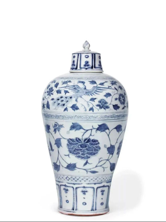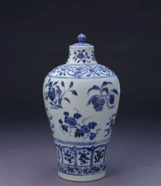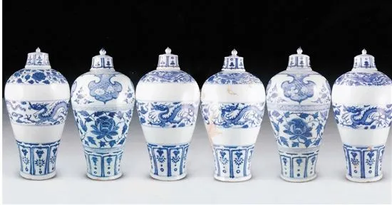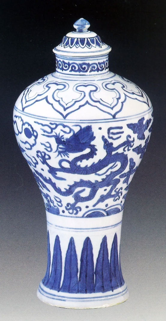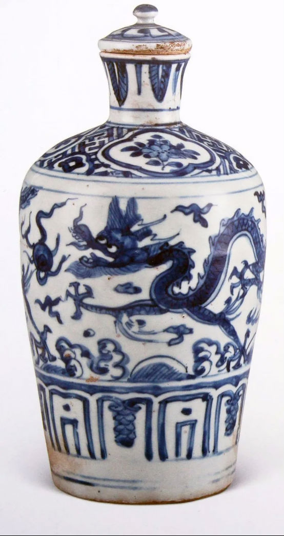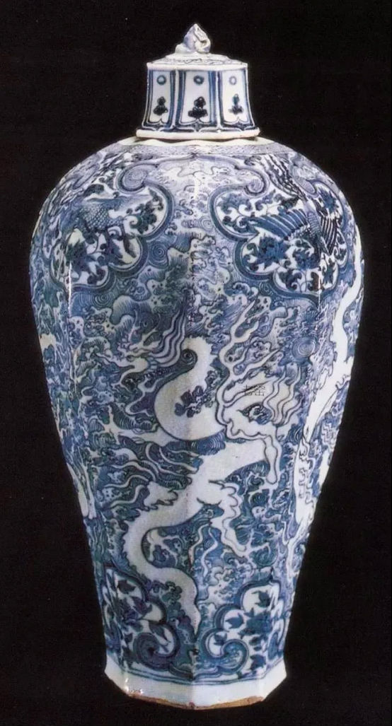 元晚期景德镇窑青花海水龙纹带盖八棱梅瓶