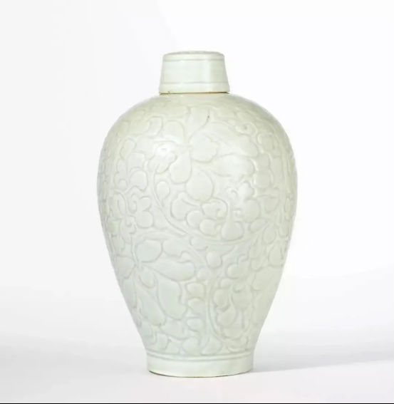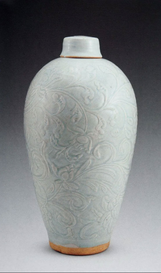 南宋景德镇窑青白瓷带盖刻划花缠枝牡丹莲花纹梅瓶,