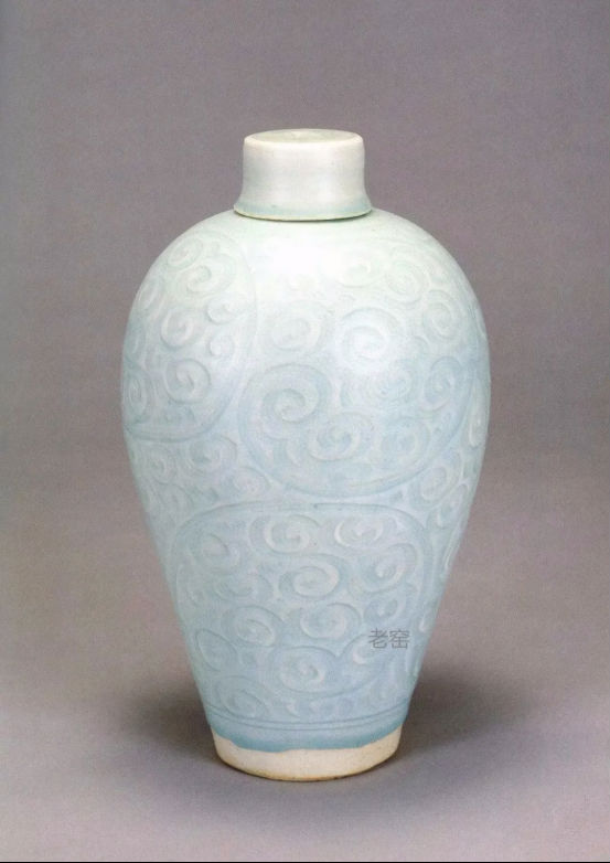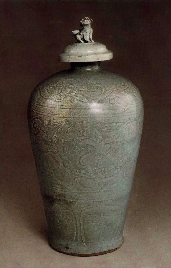 元前期景德镇窑青白瓷刻划花水龙纹带盖梅瓶