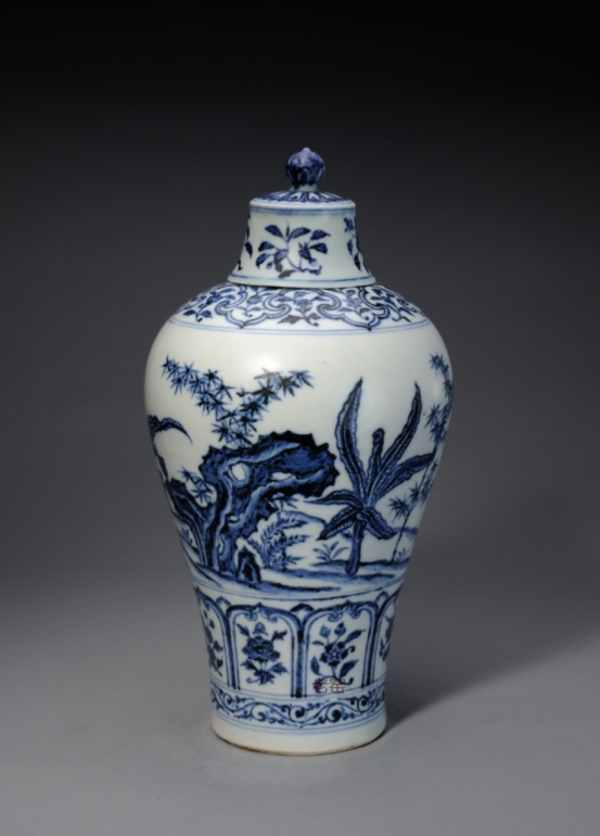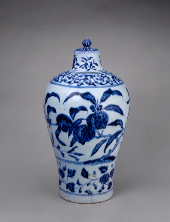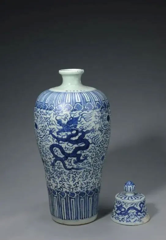 明代万历景德镇民窑青花双龙戏珠纹带盖梅瓶