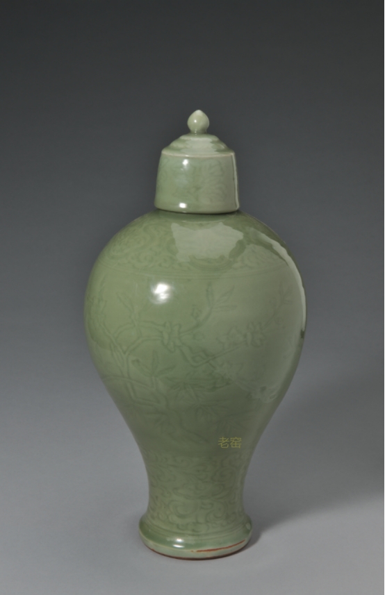 明早期龙泉窑青瓷刻划花桃竹图梅瓶