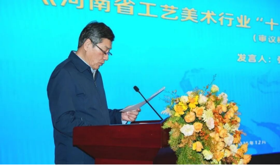 名誉会长张玉骉对《关于河南省工艺美术行业“十五五 ”发展规划的意见(审议稿)》进行说明