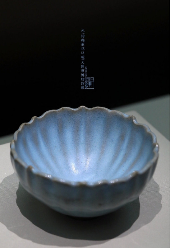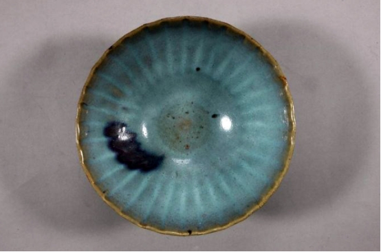 钧窑天蓝釉紫红斑菊瓣碗 元