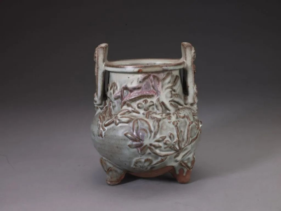 二是堆贴花装饰,这种堆贴花手法是元代所特有的,内蒙古出土的堆花三足炉就是这类装饰作品。