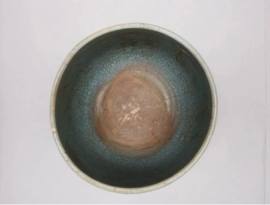 元代钧窑瓷器与宋代的钧窑瓷器相比,胎质较为粗糙,并不像宋代钧窑瓷器那样胎质细密;元代钧窑瓷器釉面光泽性较差且有很多棕眼。釉色以月白色、天蓝、月白交融为主,釉不施到底且圈足内外无釉。